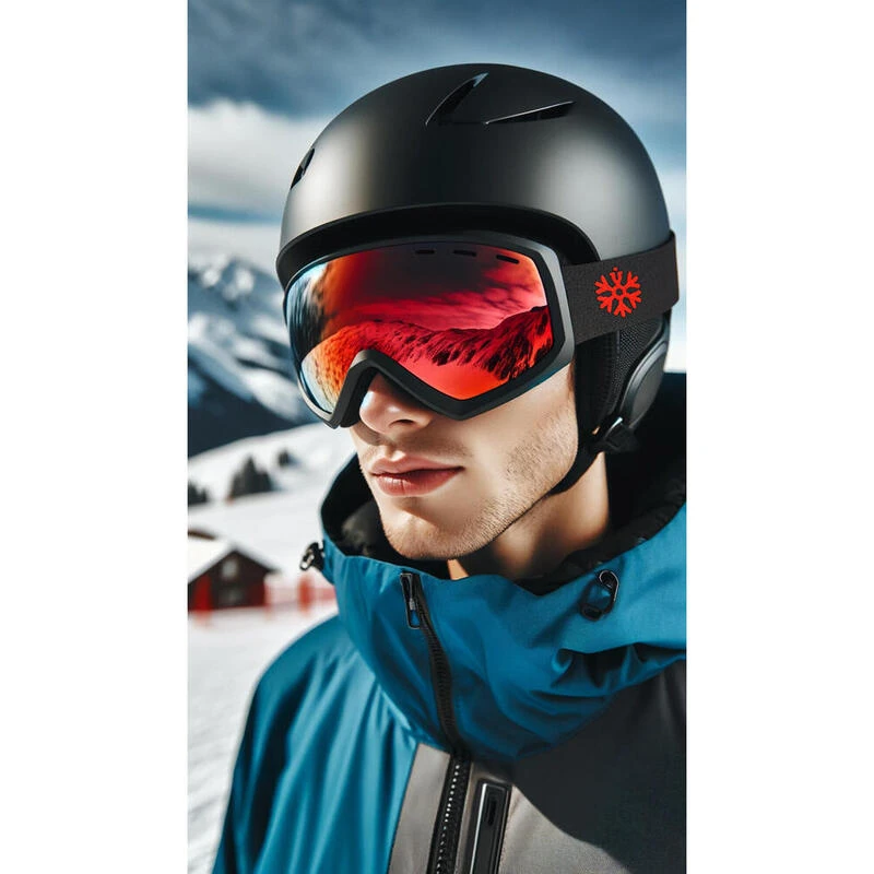 Masques de ski / Lunettes de snowboard de couleur noir mat avec verre miroir rouge