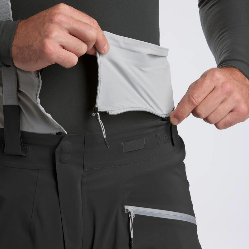 Pour protéger un maximum votre pantalon nous avons choisi une matière très résistante en bas de jambe pour limiter les coupures dûes aux carres des skis, nous avons également collé une matière spécifique à l’intérieur du pantalon pour éviter que les crochets de vos chaussures ne détériorent trop rapidement la membrane de celui-ci.
